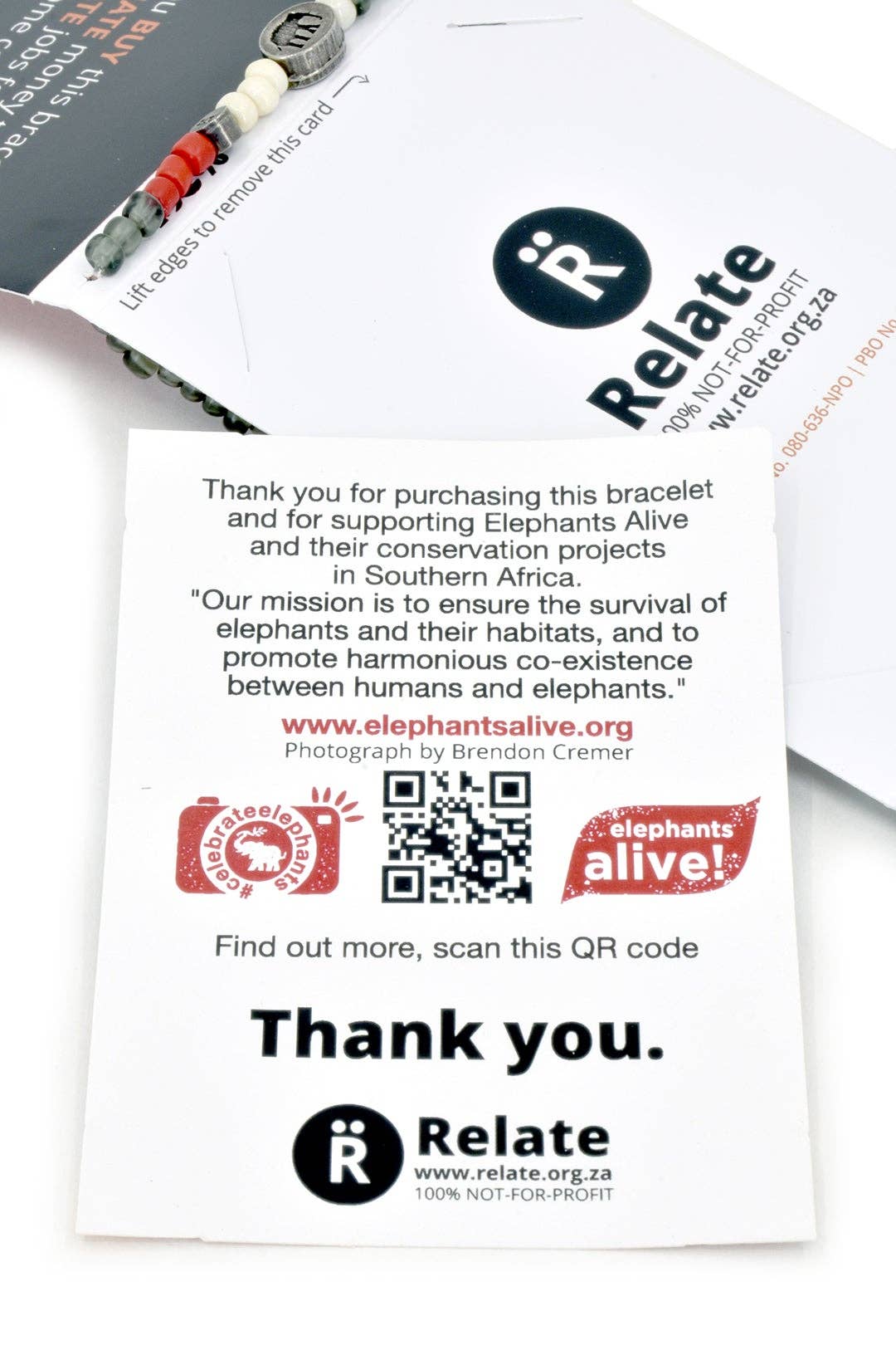Through the sale of Celebrate Elephants bracelets, Relate has raised more than $60,000USD to support Save the Elephants. Each bracelet is handcrafted in South Africa, and includes an informative display card to promote awareness for Elephants Alive.
