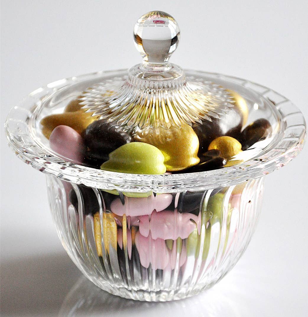 PERFECT FOR HOUSEWARMING: With its crystal-cut elegant style and optimum size (4.7 in height and 4.5 in diameter) this candy bowl is an ideal gift for housewarming, Mother's day, or any occasion.