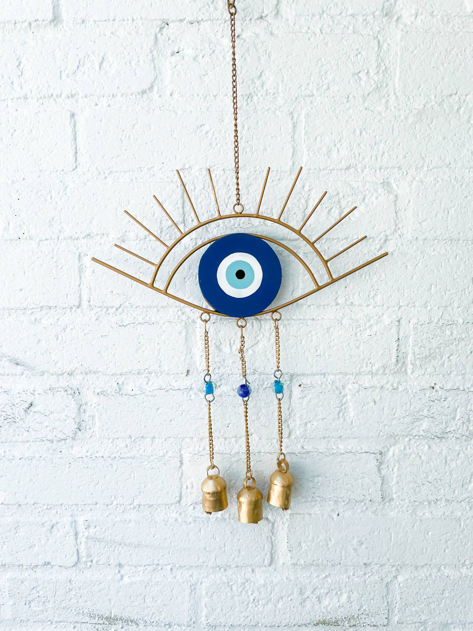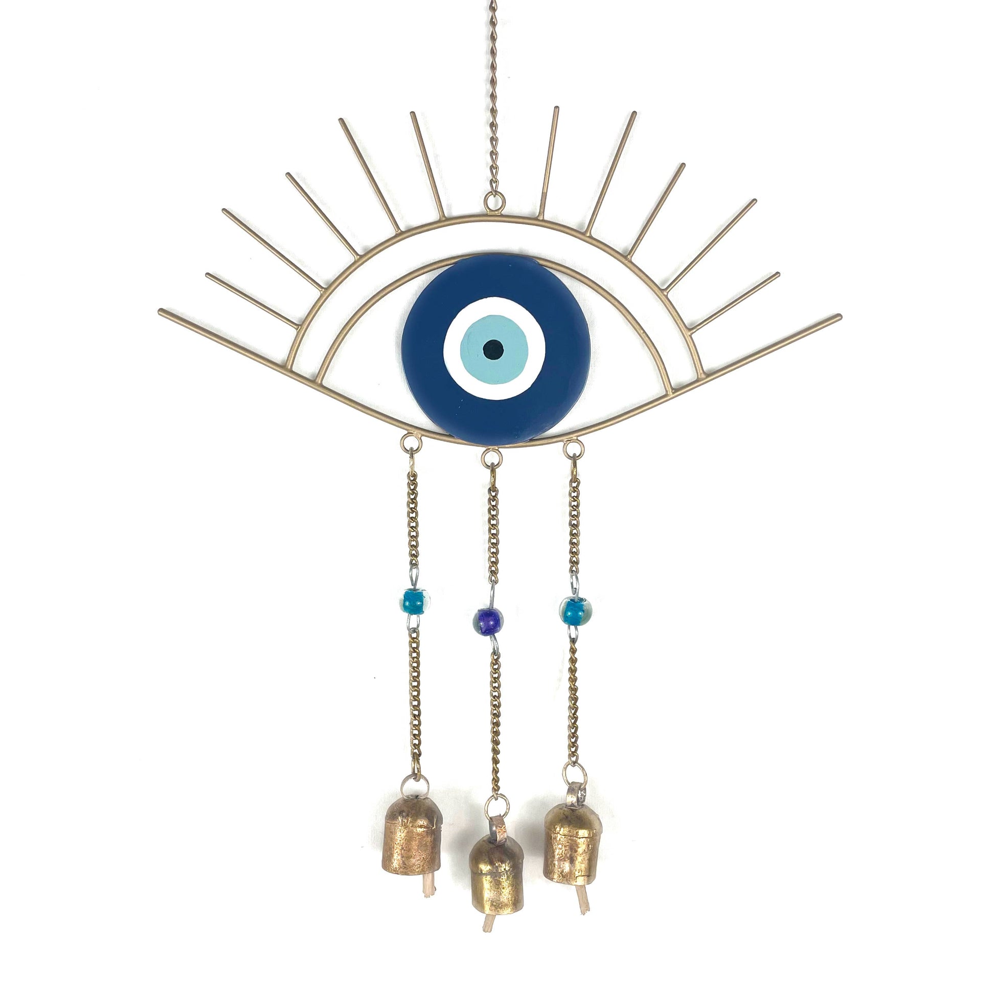 Key words: home decor, evil eye, wind chime, handmade, boho decor, blue, eye, protection, fair trade, India, summer, spring, garden, garden decor, outdoor, Mother's Day, gift, Father's Day