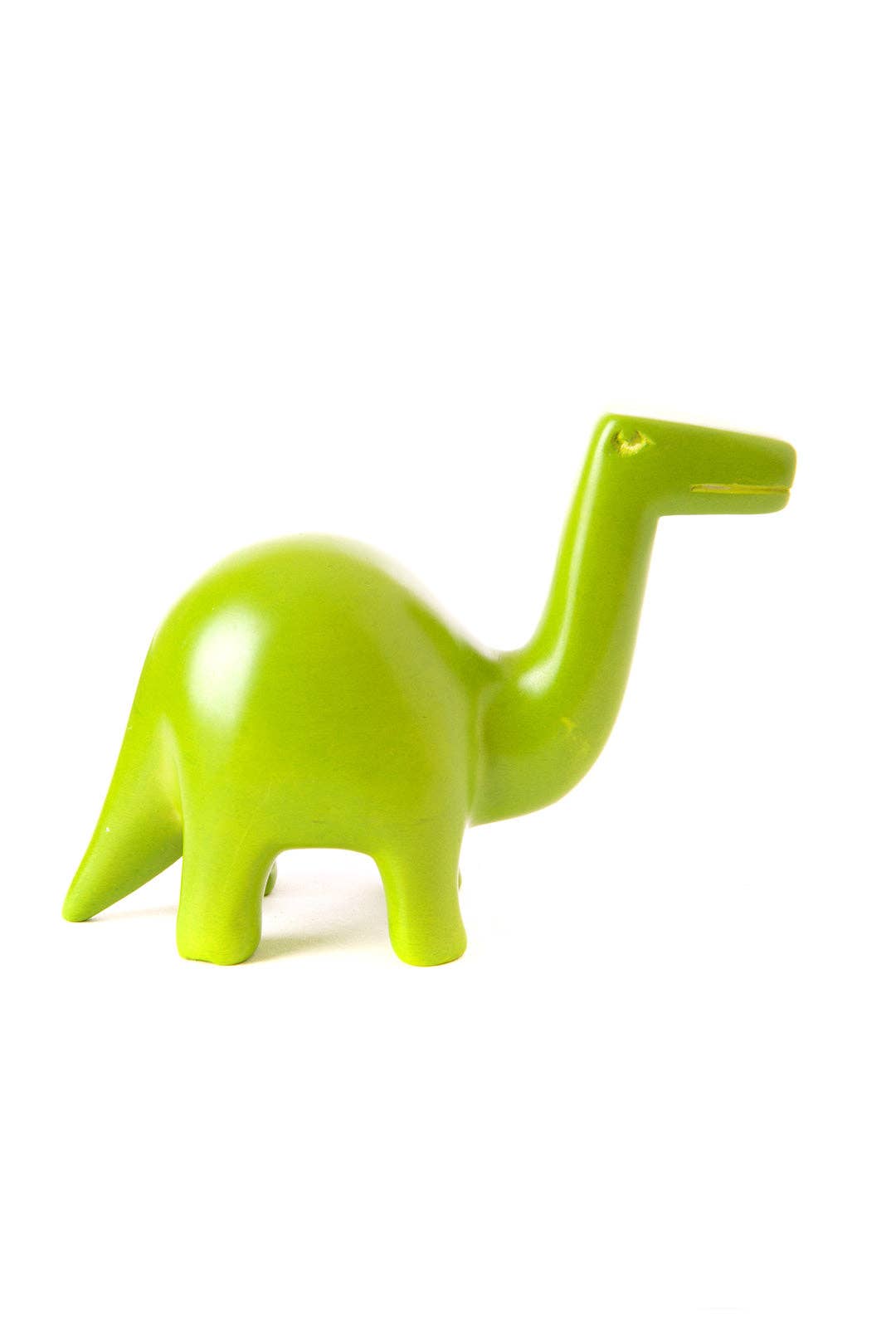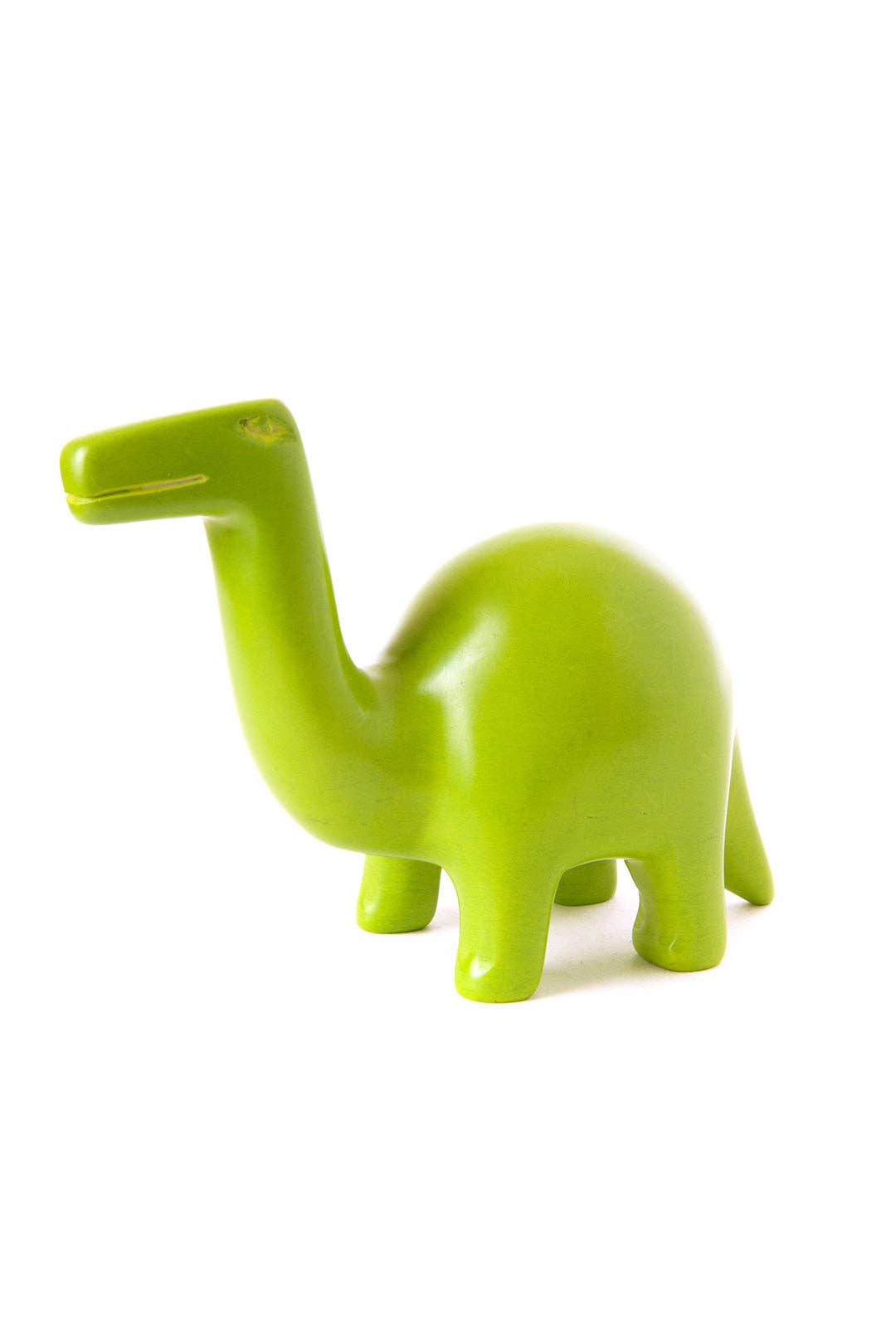 This playful dinosaur is hand carved from soapstone by artisans in Kenya's Kisii Highlands. A vibrant green dyed finish brightens up the sculpture.