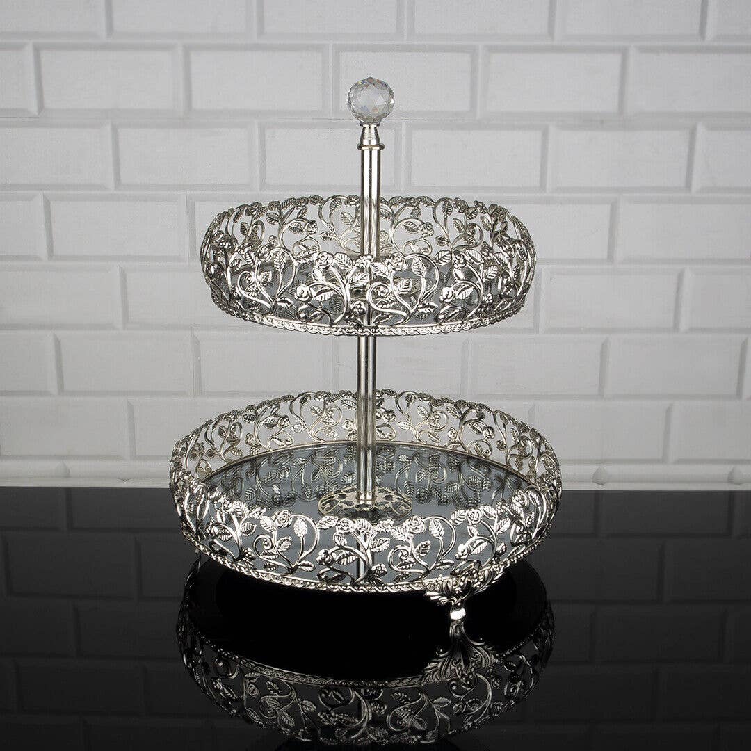 Handmade Two Tier Mirrored Tray for Dessert Table or Vanity