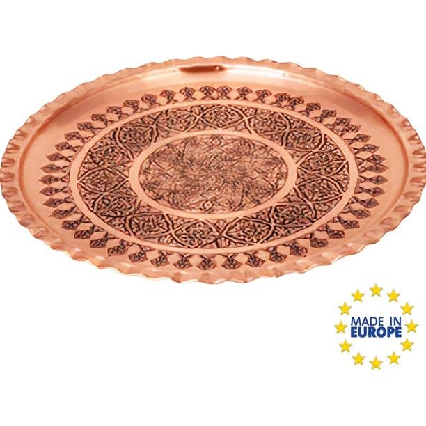 VERSATILE: The copper serving plates can be used for serving Turkish tea, coffee, champagne, wine, and other beverages. Also, thanks to the elegant vintage design of Ottoman tray, these copper trays are great as a décor object, ornament, vanity tray, wedding tray, and so on.
