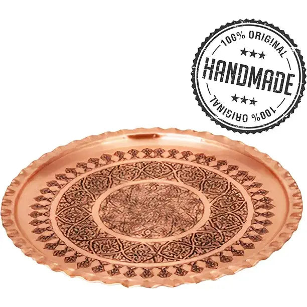 HANDMADE & 100% PURE COPPER: The copper Turkish tea-coffee trays are delicately handcrafted from 100% high-quality solid copper in Turkey-Europe.