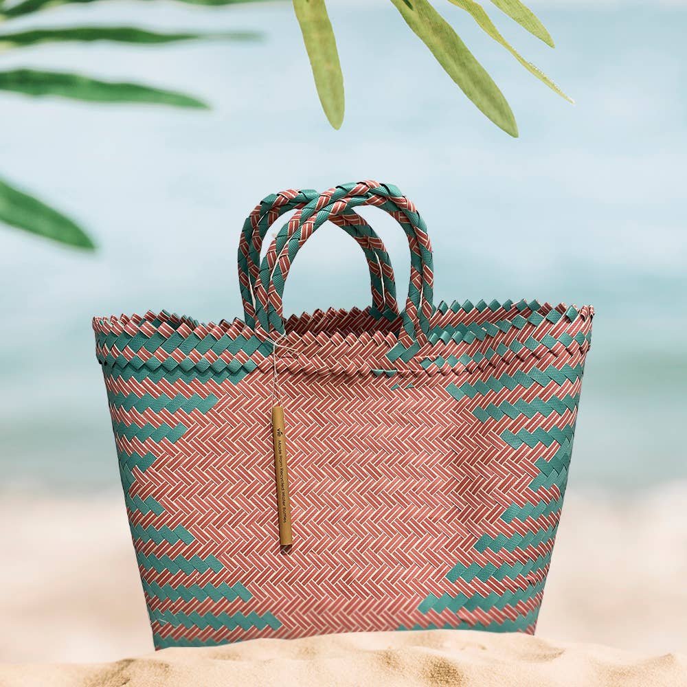 Recycled Plastic Woven Beach/Tote Bag, Large-Assorted Color