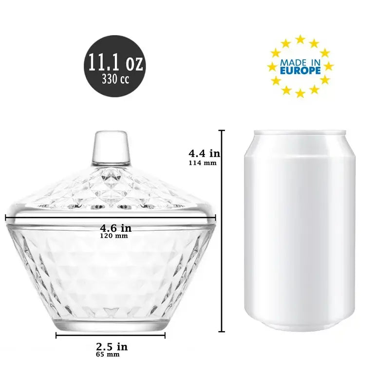 Glass Canister is manufactured from high quality glass. It is far healthier than plastic. You can keep sugar, sweets, cookies in glass canister in safe. You can use serving Bowl with lids while you are serving tea, coffee and others. You can add very style addition to your breakfast table. Durable Glass Canister keeps your sugar from humidity. These (330 cc – 11.15 oz.) glass jars are ideal for storing and displaying all manner of dry goods including flour, cookies, rice, coffee, spices, candy, and much more. These glass containers will be a good helper for serving your everyday food. You can use them over and over again and save your money, and your time.