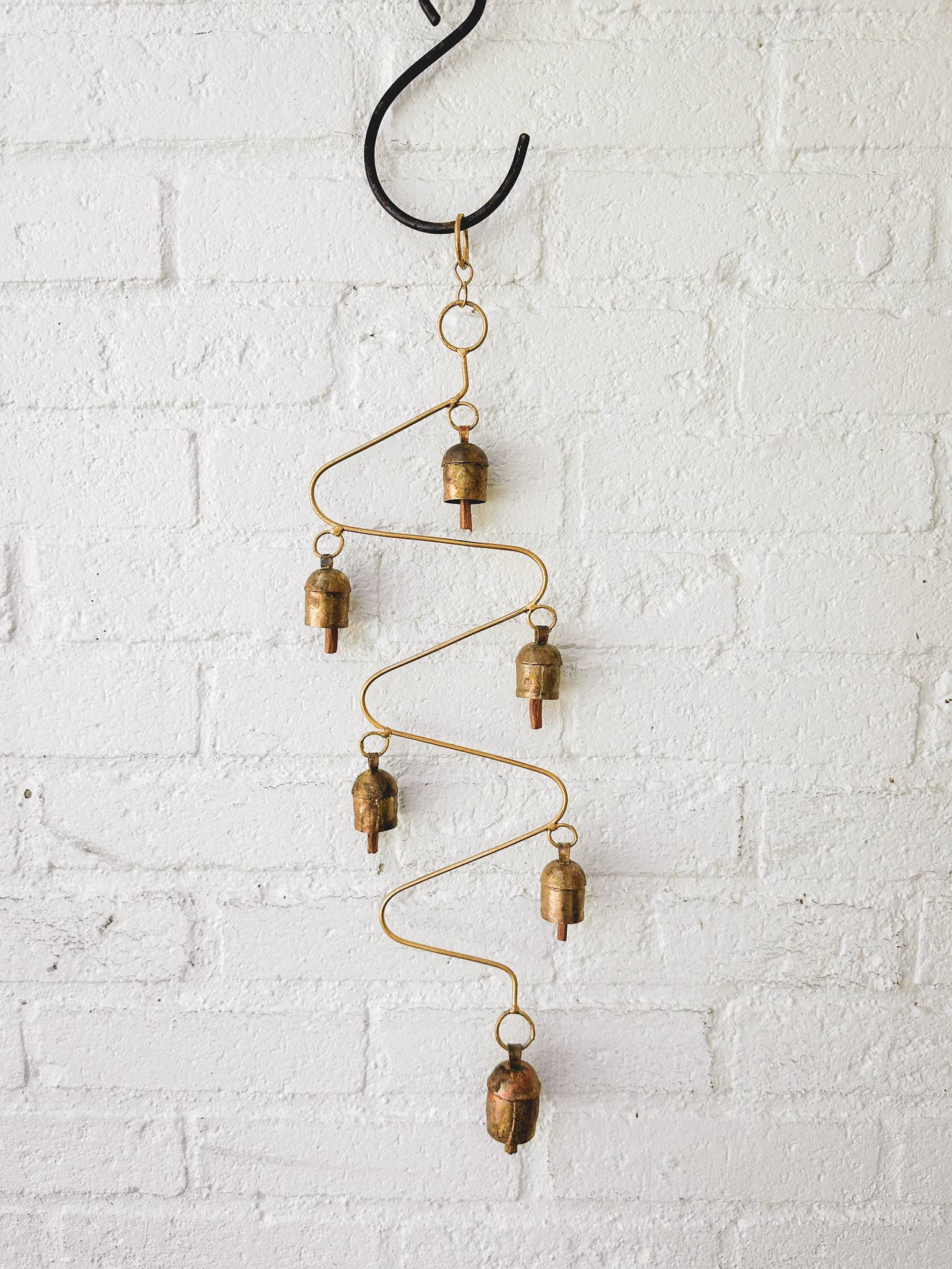 Keyword: Zig zag, India, fair trade, wind chime, rustic, boho, garden decor, mother's day, gift, home decor, decor, boho decor, bells, gold, Father's Day